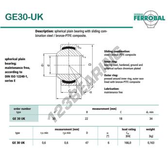Het Geew Gewrichtslager bekend als GE30-UK-DURBAL DURBAL heeft een interne diameter van 30 mm, een externe diameter van 47 mm en een dikte van 18 mm.