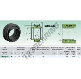 Het Geew Gewrichtslager bekend als GEEW090-ES Algemeen heeft een interne diameter van 90 mm, een externe diameter van 130 mm en een dikte van 90 mm.