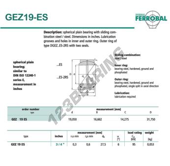 Het Geew Gewrichtslager bekend als GEZ19-ES-DURBAL DURBAL heeft een interne diameter van 19.05 mm, een externe diameter van 31.75 mm en een dikte van 14.275 mm.