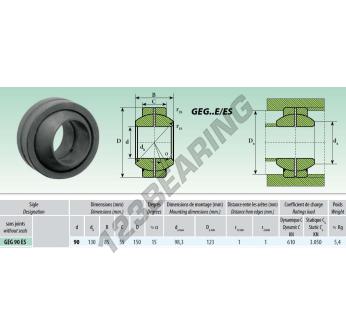 Het Geg Gewrichtslager bekend als GEG090-ES Algemeen heeft een interne diameter van 90 mm, een externe diameter van 150 mm en een dikte van 85 mm.