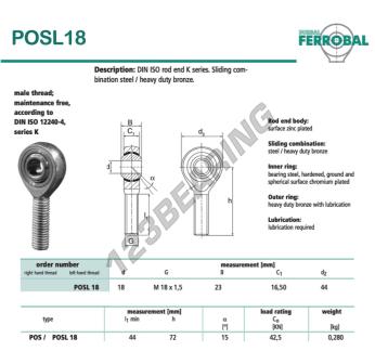 Het Stangkop Sa bekend als DPOSL18-DURBAL DURBAL heeft een schroefsteek van ,  een binnendiameter van 18 mm, een buitendiameter van 44 mm en een dikte van 23 mm.