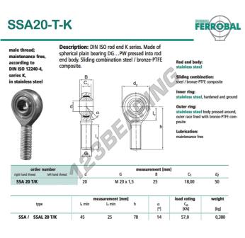 Het Stangkop Sa bekend als DSSA20-T-K-DURBAL DURBAL heeft een schroefsteek van , een binnendiameter van 20 mm, een buitendiameter van 50 mm en een dikte van 25 mm.