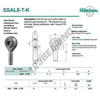Het Stangkop Sa bekend als SSAL8-T-K-DURBAL DURBAL heeft een schroefsteek van , een binnendiameter van 8 mm, een buitendiameter van 24 mm en een dikte van 12 mm.