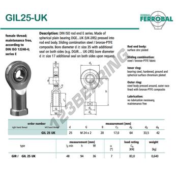 Het Si Stangkop bekend als DGIL25-UK-DURBAL DURBAL heeft een interne diameter van 25 mm, een externe diameter van 64 mm en een dikte van 20 mm.